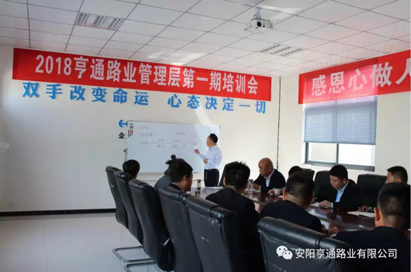 2018年4月18-20日,為加強公司管理隊伍建設,增進中層間的相互交流,培養(yǎng)鍛煉團隊精神和協(xié)作意識,亨通路業(yè)全體中層從天南地北各個項目返回公司集中開展了為期三天的以“感恩心做人,責任心做事”為主題的專項培訓活動。